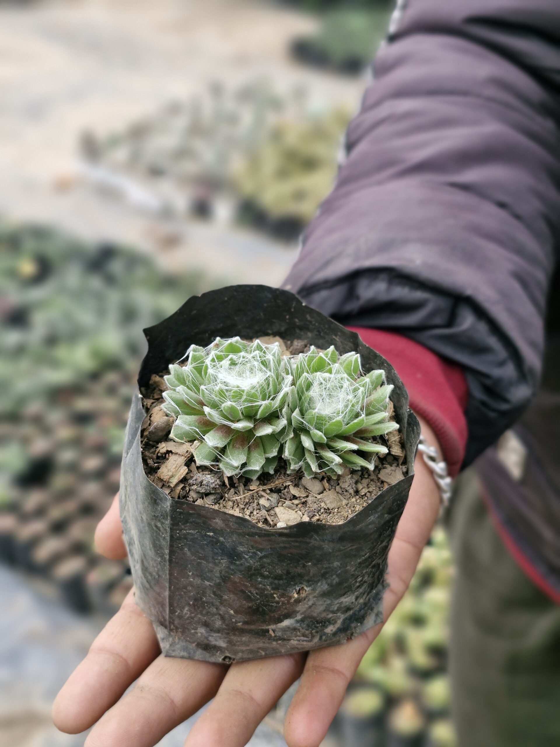 Cobweb Succulent (Sempervivum arachnoideum) is a charming rosette-forming succulent known for its unique white, web-like threads that stretch across its green leaves, giving it a “cobweb” appearance. Compact and hardy, this eye-catching plant is perfect for rock gardens, small pots, and outdoor arrangements. It is easy to grow and highly drought-tolerant, making it ideal for beginners.