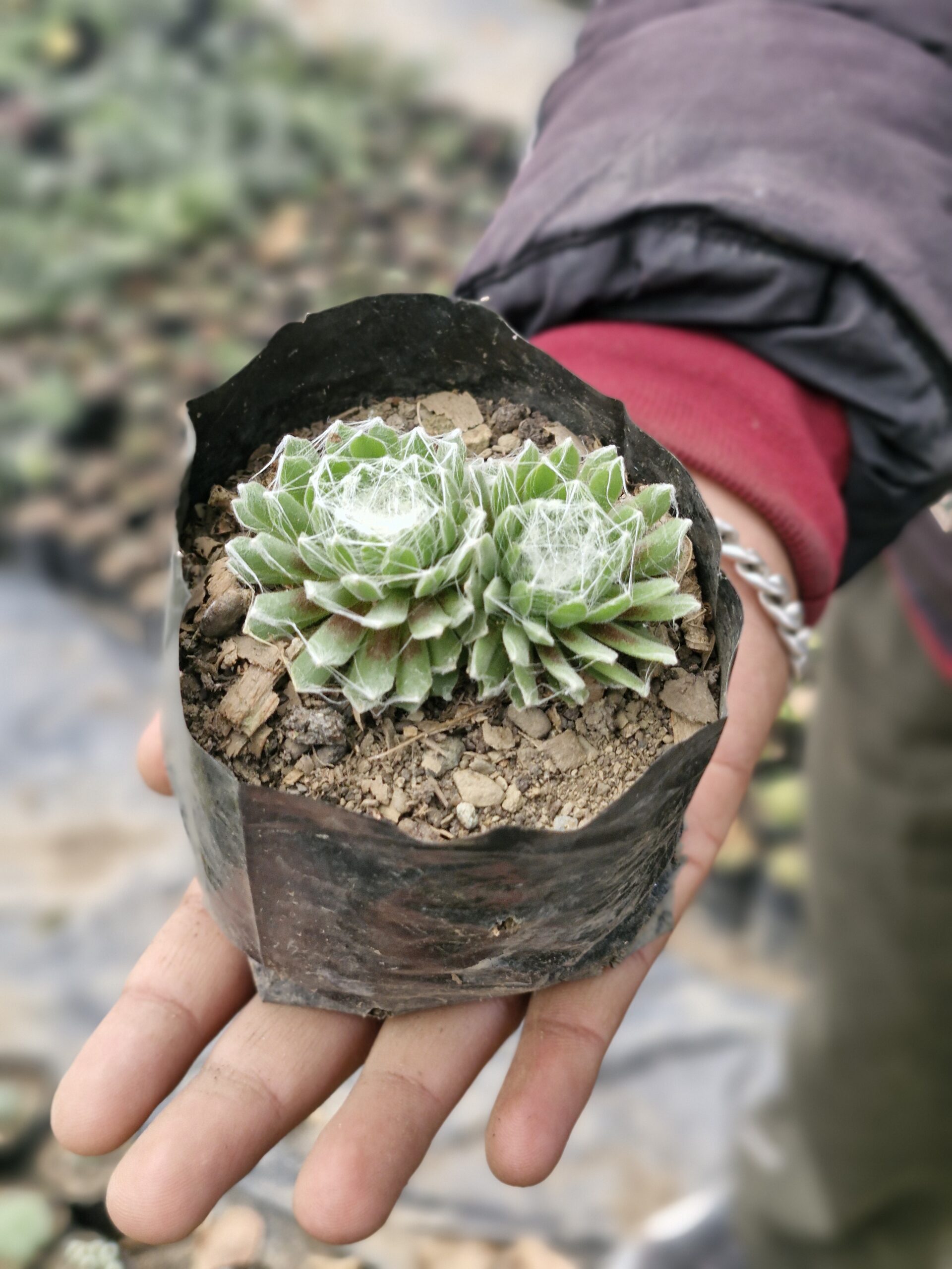 1. Unique Cobweb Effect – Fine white hairs form a web-like pattern over the rosette.