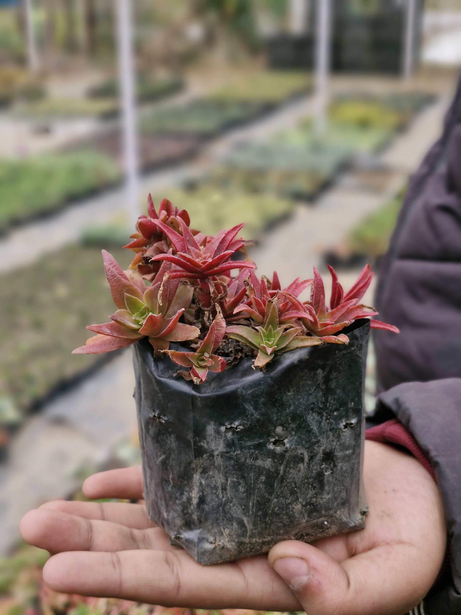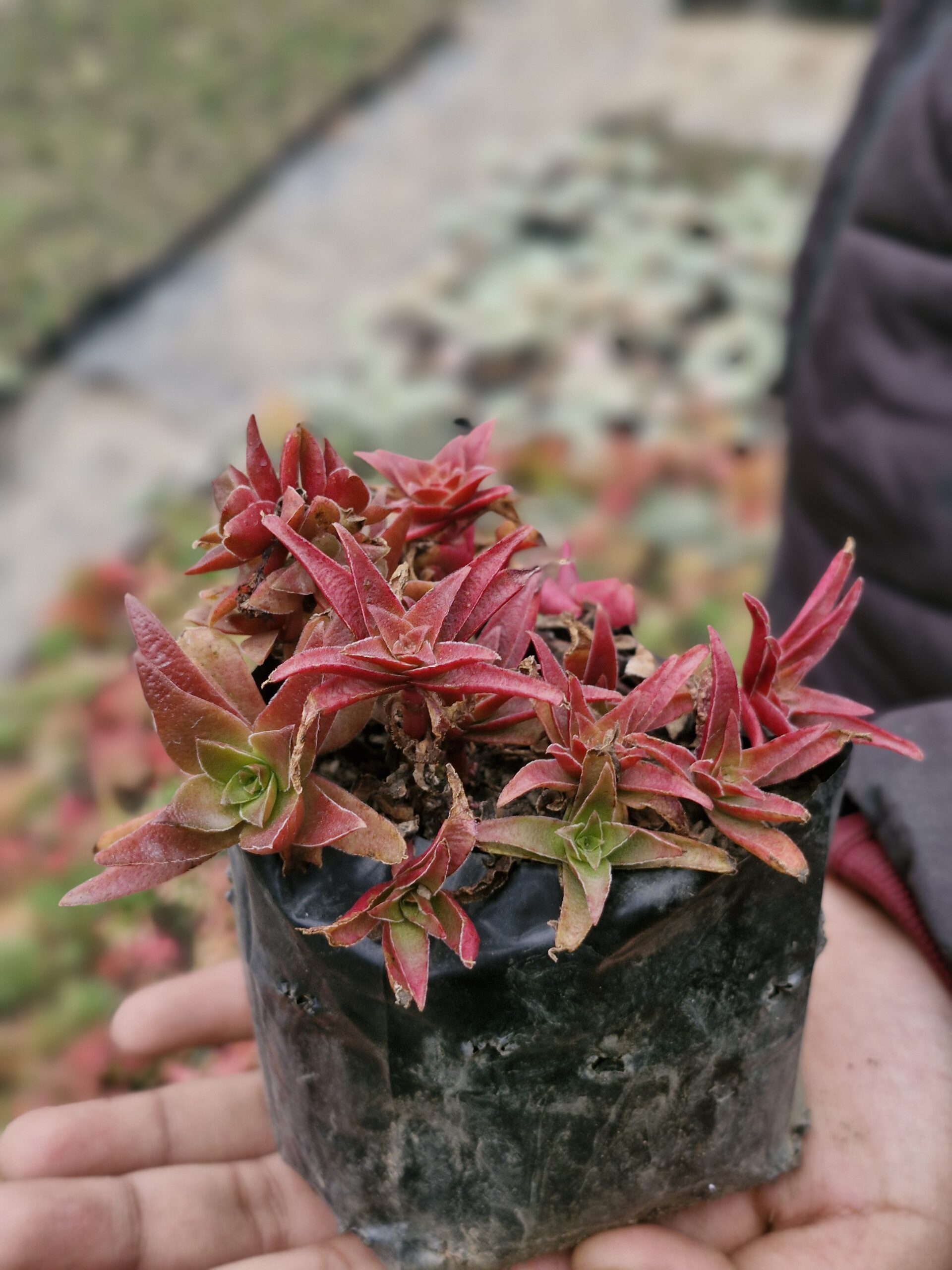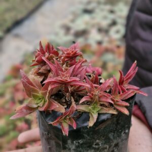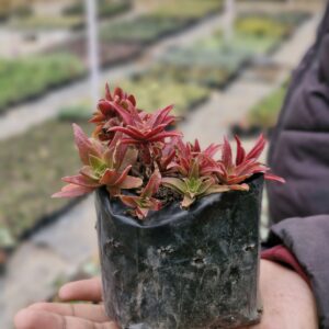 Crassula Thyrsiflora is an attractive succulent with thick, stacked leaves arranged in a compact, upright form. The foliage develops red or pink tones in bright sunlight, giving it a striking appearance. It is low maintenance, drought-tolerant, and ideal for pots and succulent arrangements.