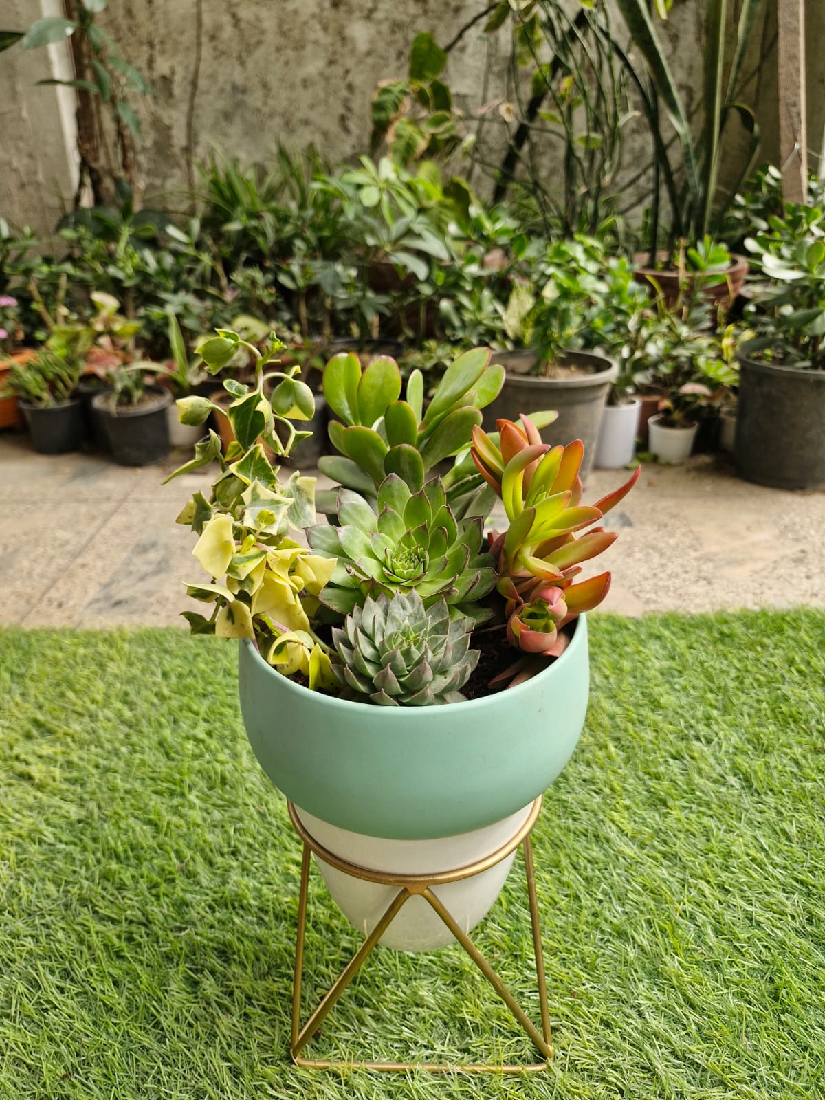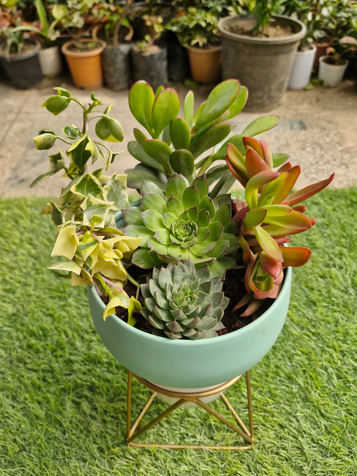 Each plant adds its own unique texture and color, creating a balanced and elegant succulent arrangement. Whether placed on a table, work desk, balcony, shelf, or living room corner, this combo planter instantly enhances the natural beauty of your space.